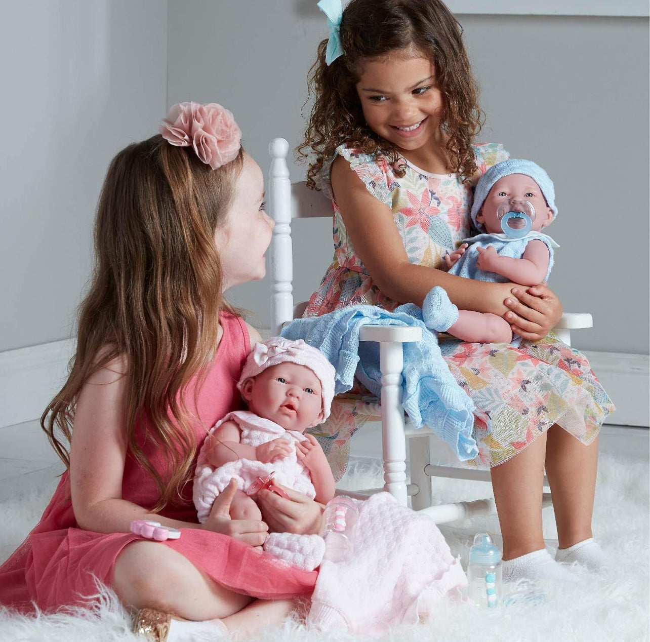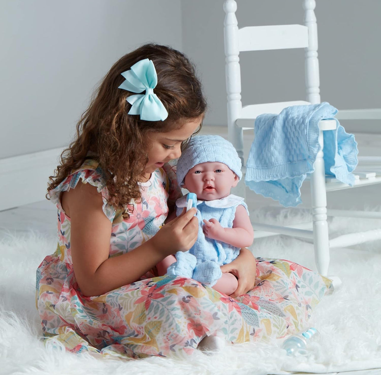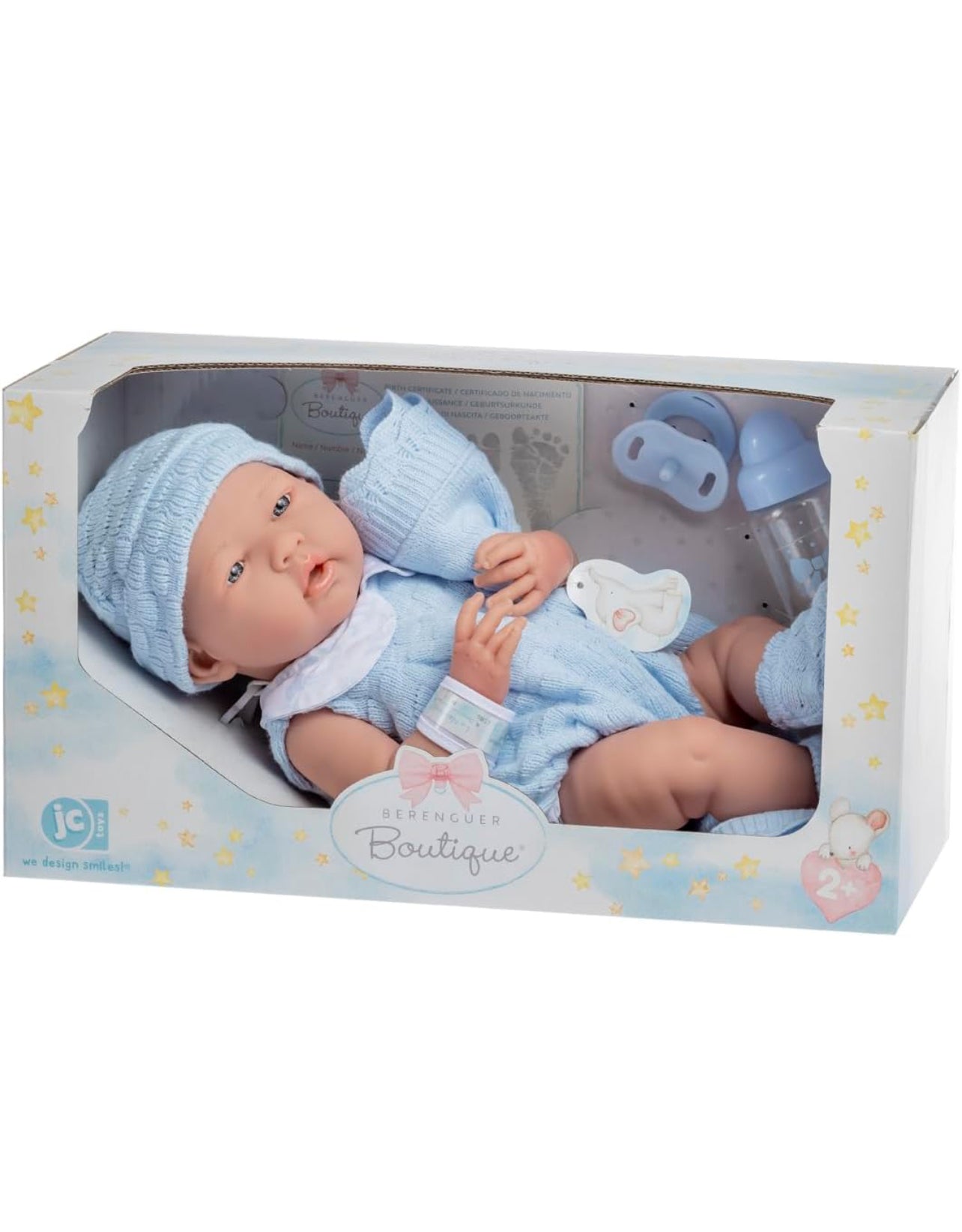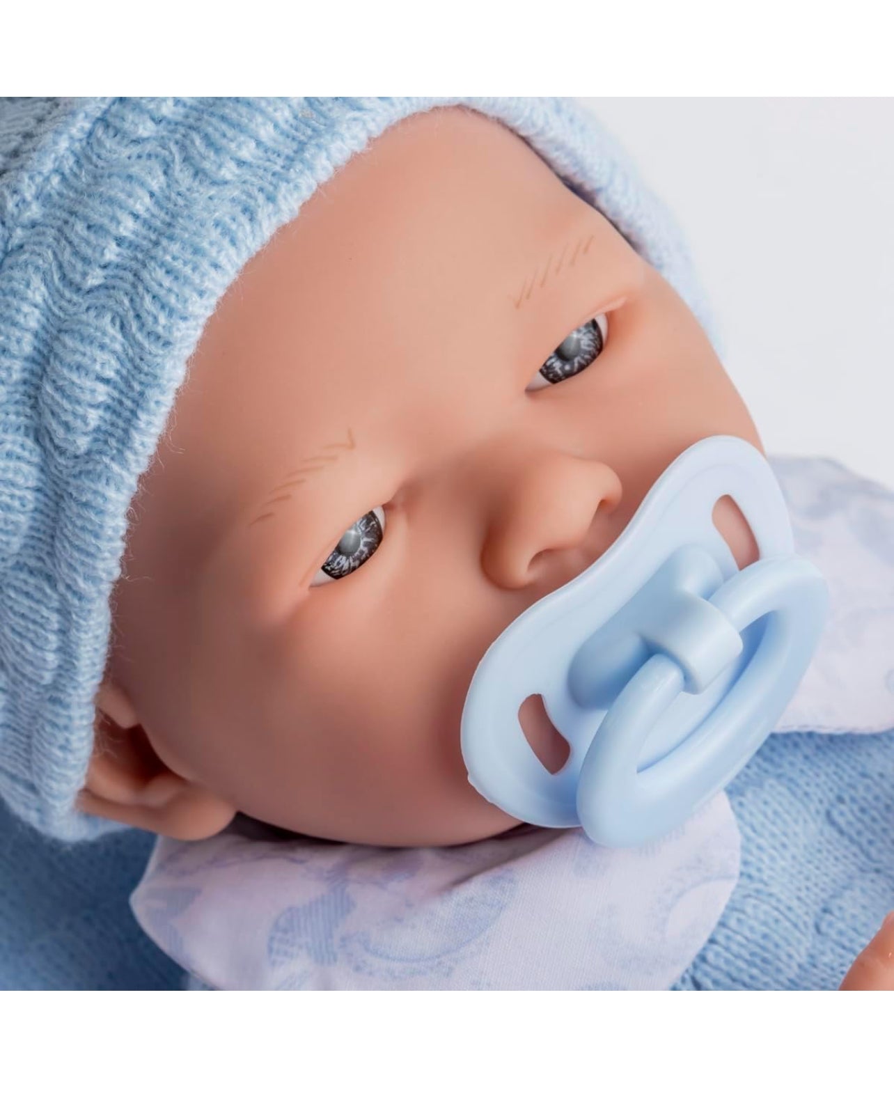 Si estás buscando una muñeca de bebé anatómicamente correcta que capte la experiencia única en la vida de traer a casa un bebé nuevo, entonces esta La Newborn es la muñeca perfecta para ti. Fabricado en España para niños de 2 años o más. Vestida con un bonito conjunto de punto, nuestra recién nacido es tan dulce como puede ser. Esta preciosa La Newborn cuenta con una expresión deliciosa y llamativos ojos azules que seguramente derretirán tu corazón. Es un "Real Boy" de 15" de vinilo anatómicamente correcto con brazos, piernas y cabeza movibles. Está hecho completamente de vinilo para un fácil cuidado.